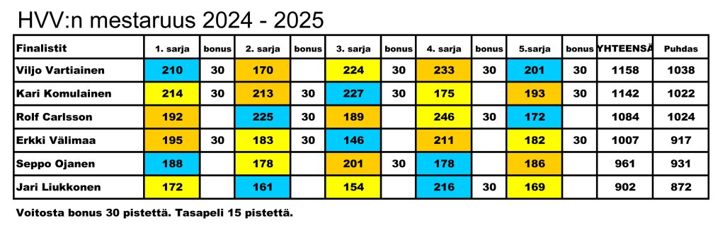 HVV1 387+461+337=1185 – HK-Kehrä 446+405+402=1253. Meille 3 vastustaja 9.